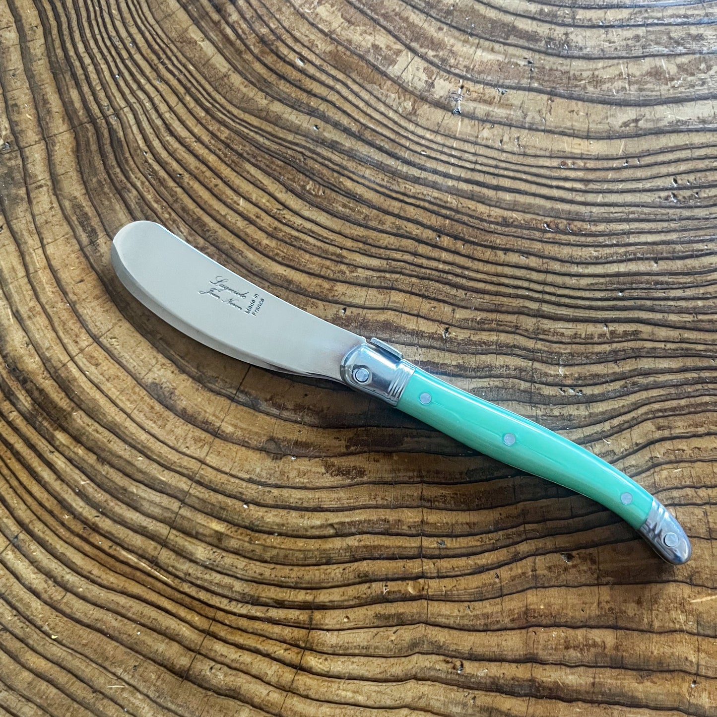 The Laguiole Butter Knife by Jean Neron is a beautifully crafted staple for any table. Made in Thiers, France, it features a stainless steel blade and a smooth, ergonomic handle in various elegant colours. Whether you're spreading butter on a fresh baguette or serving soft cheeses, this knife makes the task easy and enjoyable.