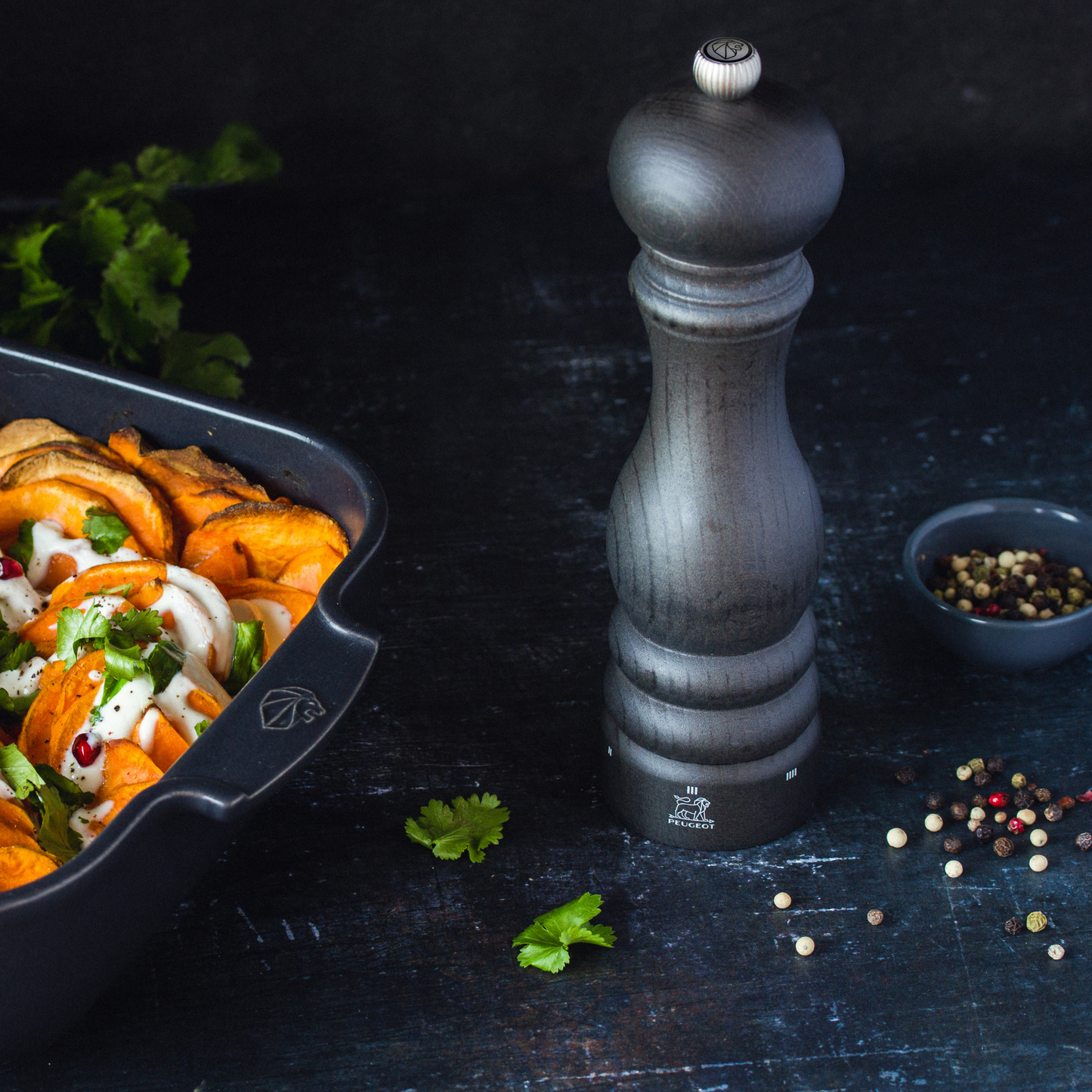 Recognizable by its lines inspired by chess pieces, the Peugeot Paris Mills are the most iconic grinders for your table and your kitchen. These Peugeot Paris Mills are equipped with the exclusive patented U’Select system so you can custom grind your salt or pepper as coarsely or as finely as you wish to 6 different sizes without battery needed.